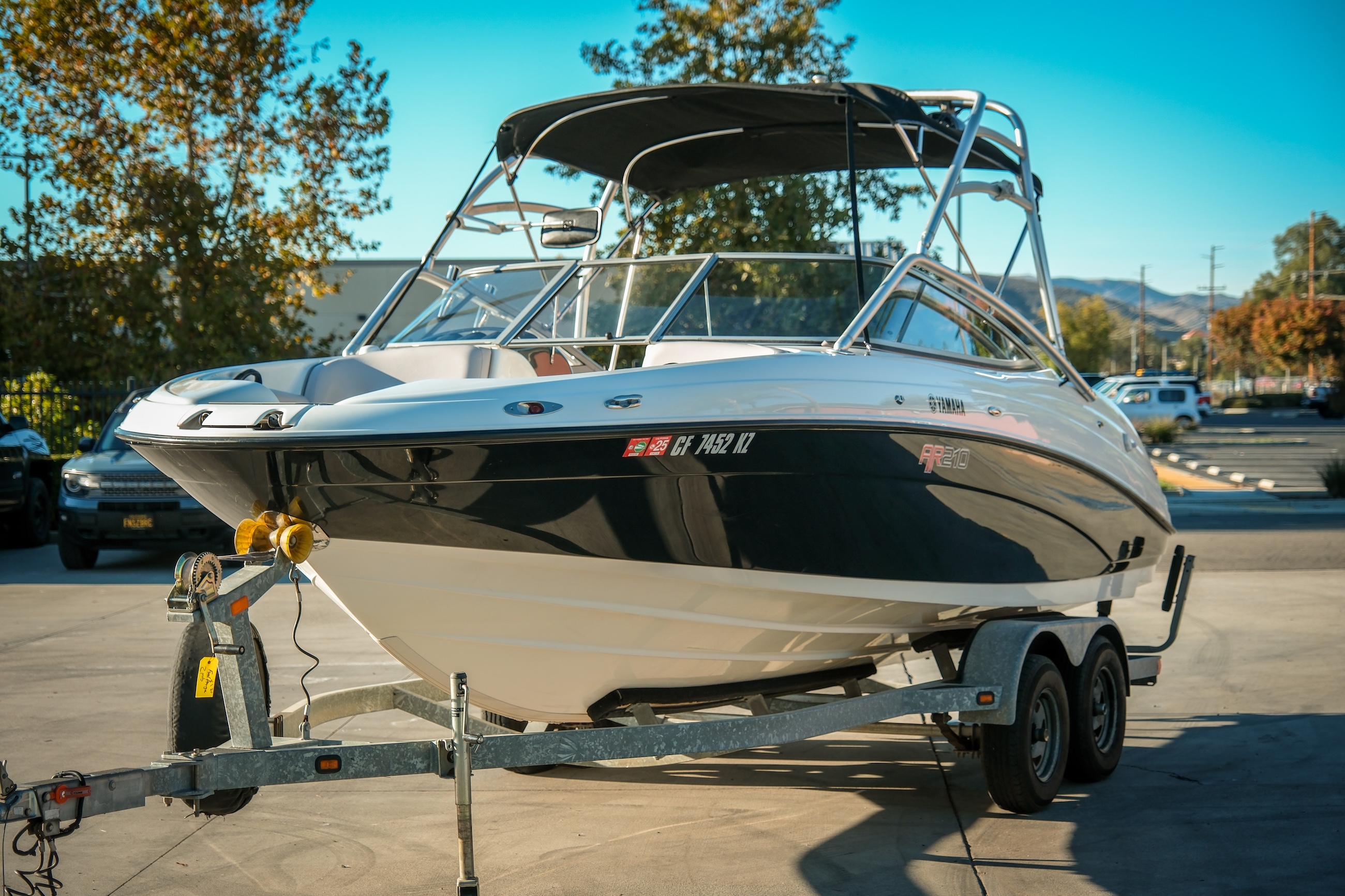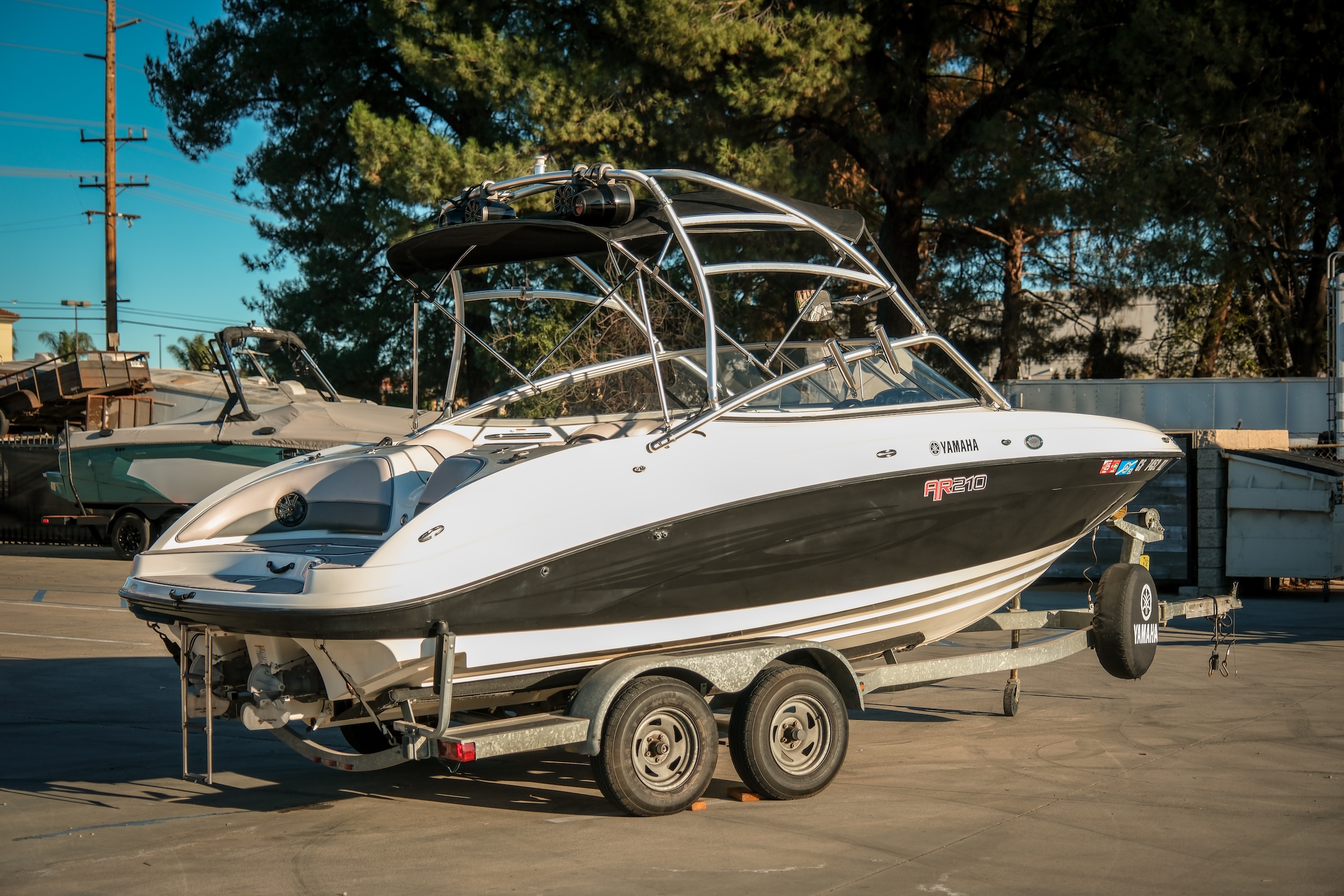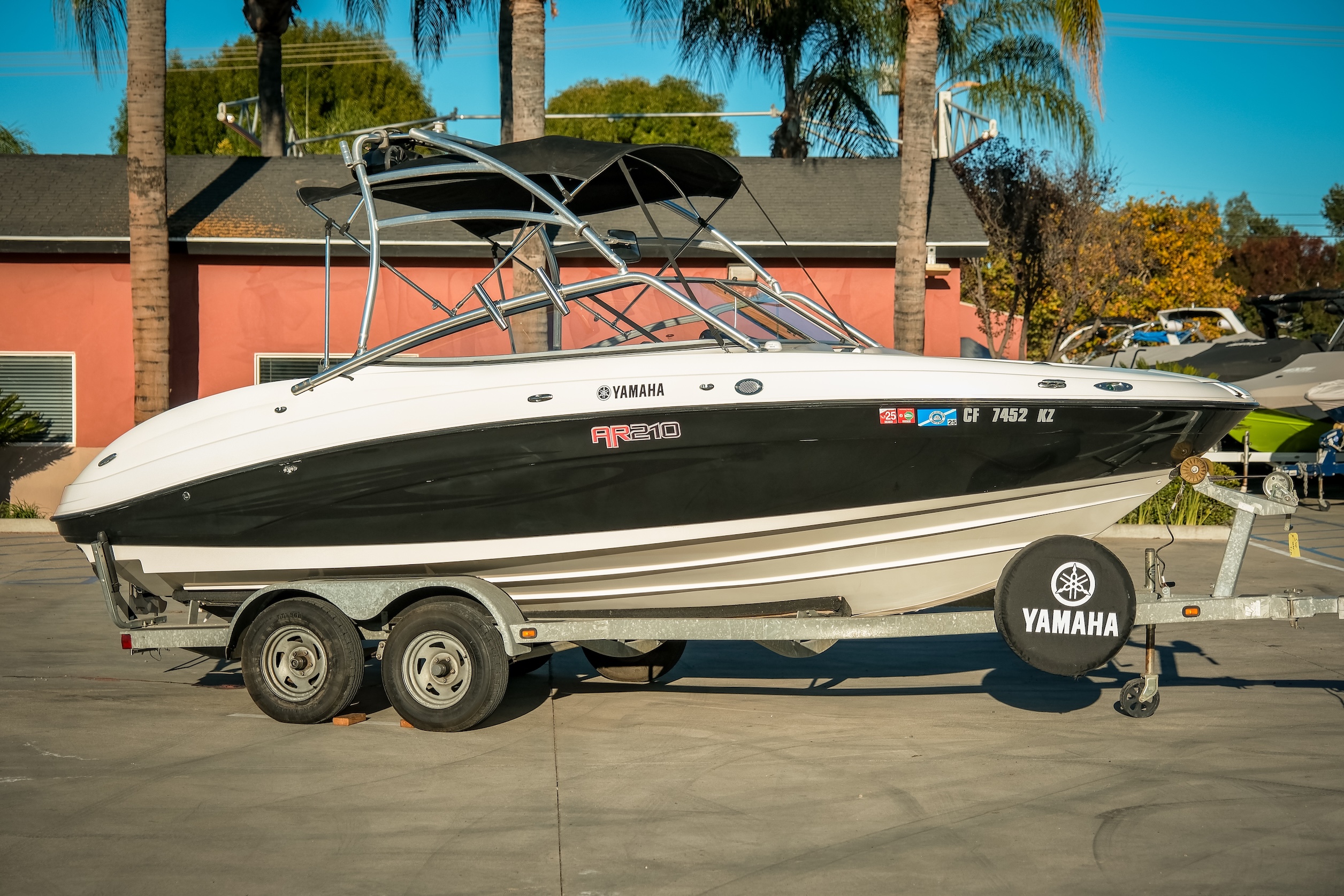 The 2007 Yamaha AR210 is a 21-foot jet boat designed for watersports and family fun, featuring twin 110hp engines for a total of 220 horsepower, which can reach speeds up to 52 mph. It includes a wakeboard tower, seating for up to nine people, and a versatile open cockpit with ample storage. Key features also include dual engines, which offer a shallow draft for safety, and independent controls for the throttles.