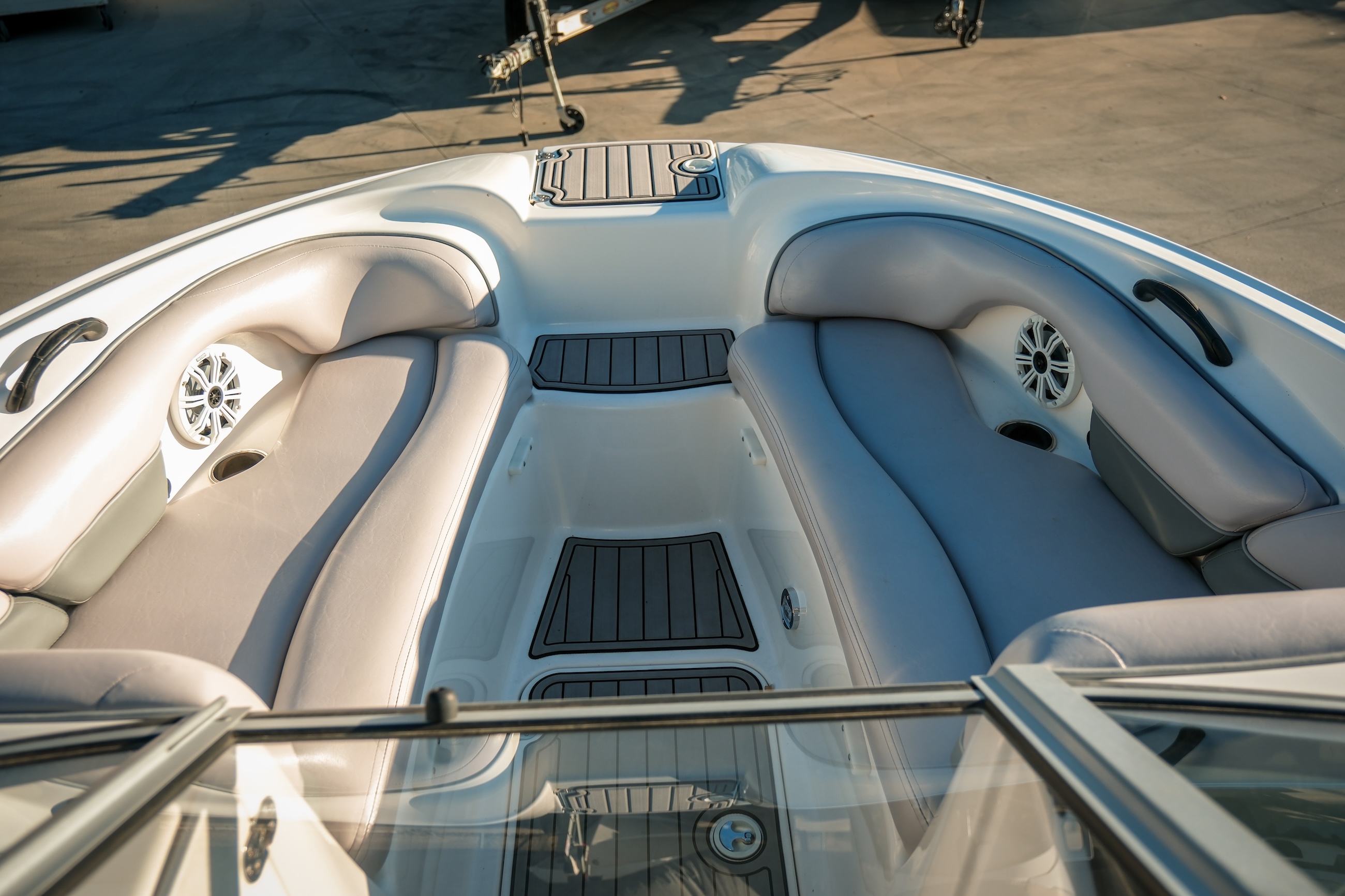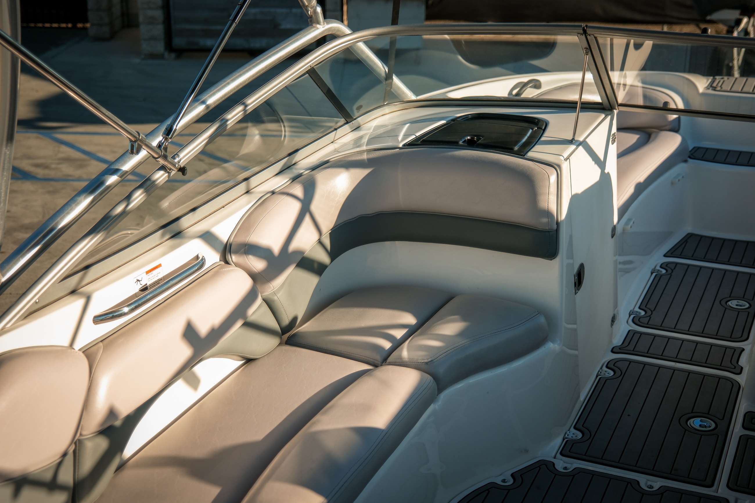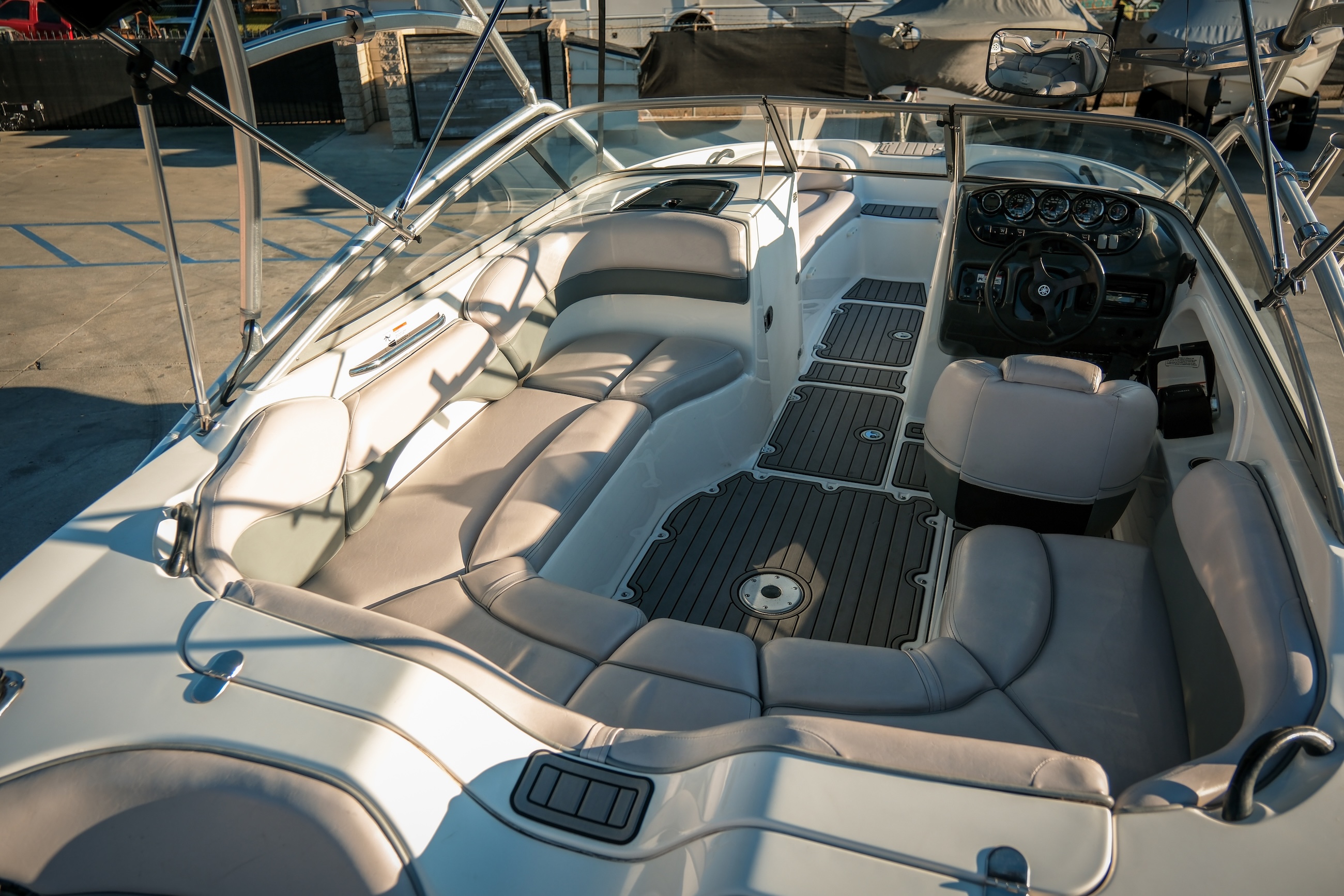 The 2007 Yamaha AR210 is a 21-foot jet boat designed for watersports and family fun, featuring twin 110hp engines for a total of 220 horsepower, which can reach speeds up to 52 mph. It includes a wakeboard tower, seating for up to nine people, and a versatile open cockpit with ample storage. Key features also include dual engines, which offer a shallow draft for safety, and independent controls for the throttles.