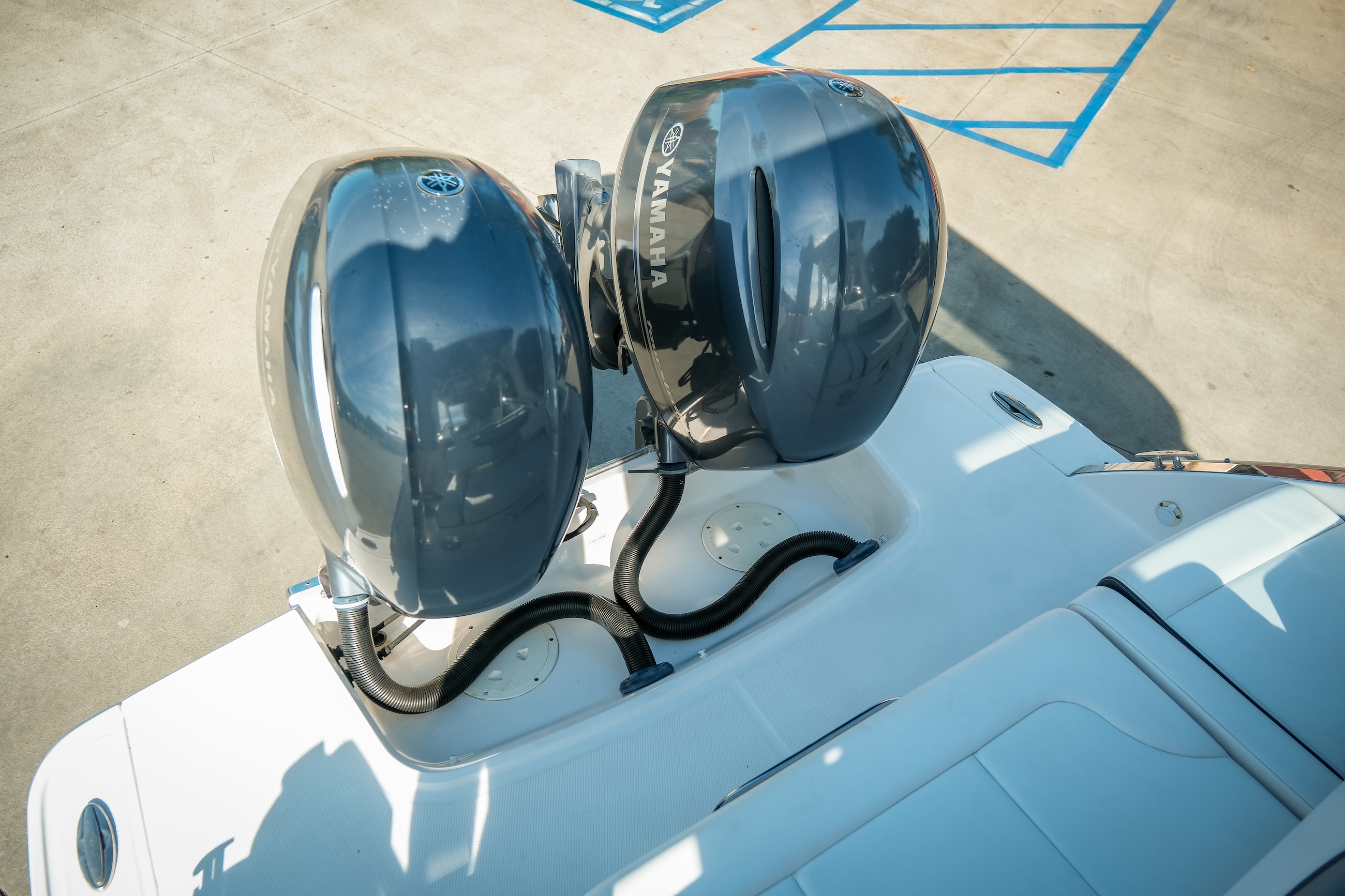 Powered by twin Yamaha 200s and paired with a brand-new 2024 Coyote triple-axle trailer, this 280 OSX is ready for coastal cruising, island runs, or entertaining at the sandbar.
