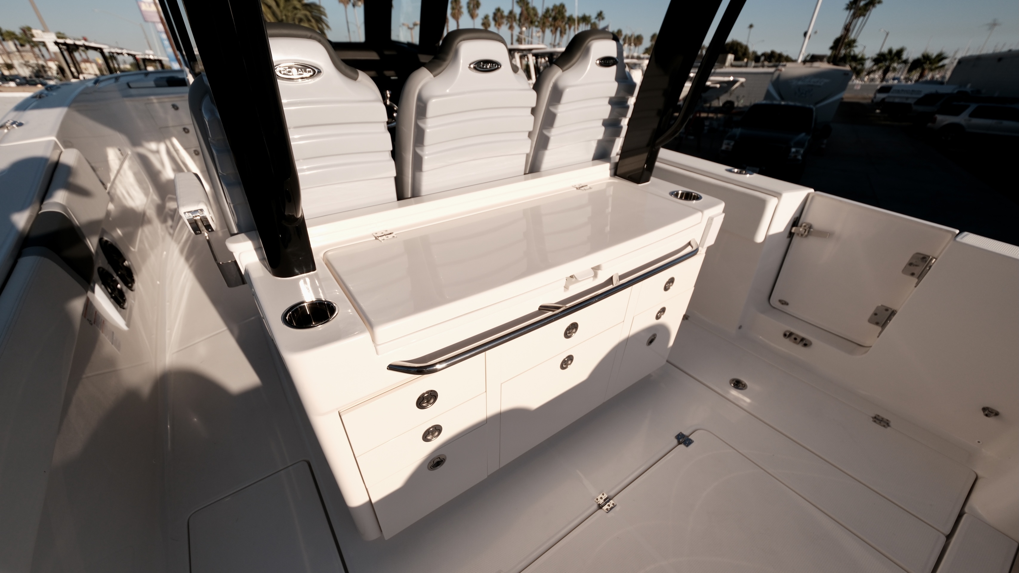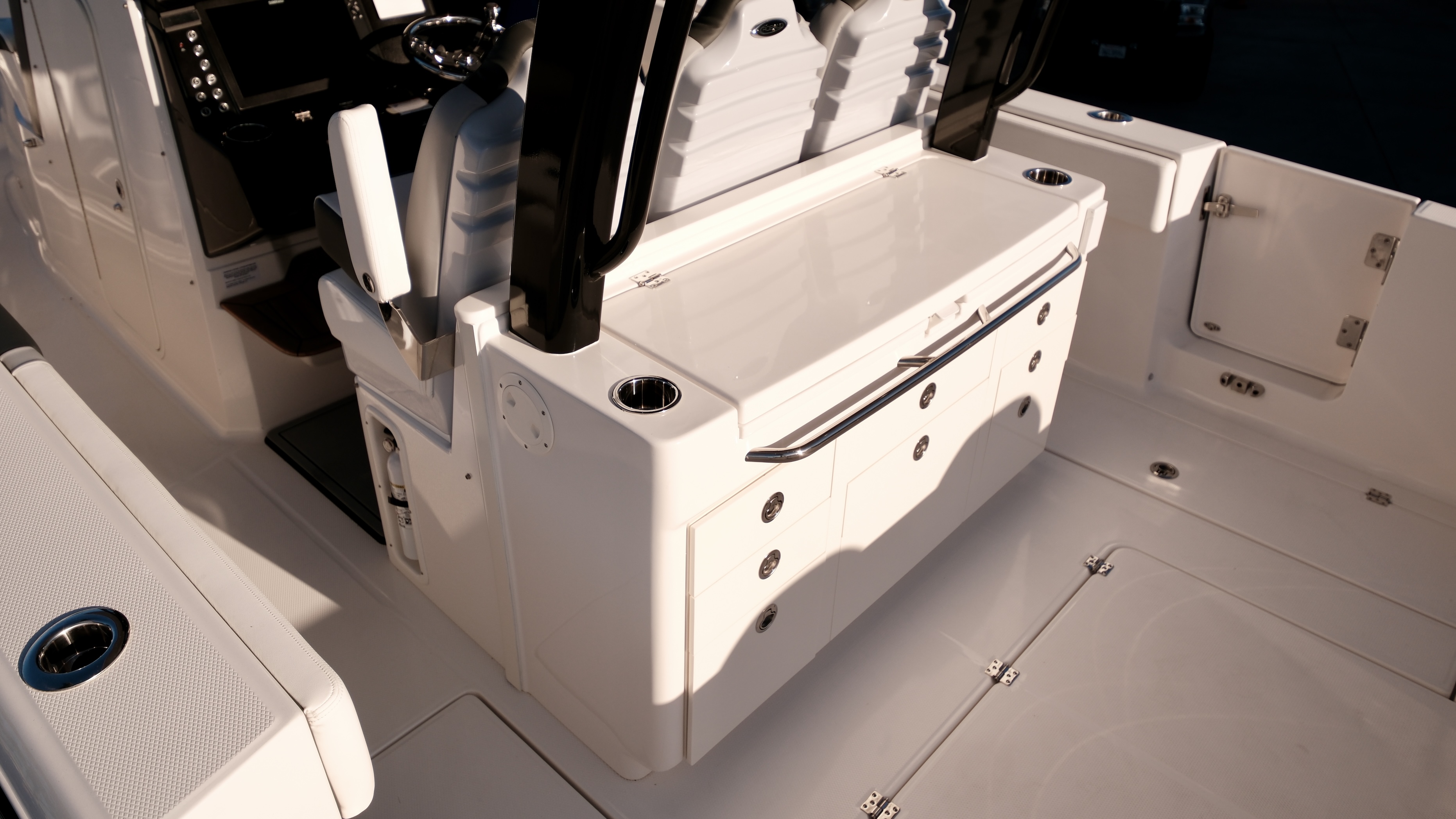 Cruising Speed: 38 mph @ 1.1 mpg efficiency (incredible for a 37-foot offshore center console)