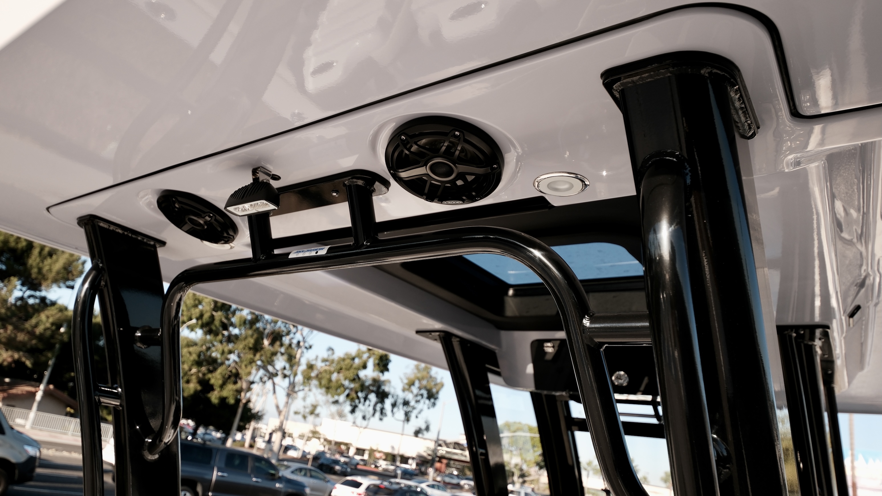 (4) Cockpit Speakers, (4) Hardtop Speakers with 800 Watt/ 8 Channel Amplifier, 10" Subwoofers (2) with 600watt/ Mono-Amplifier (All Speakers Include Blue LED Lighting)
