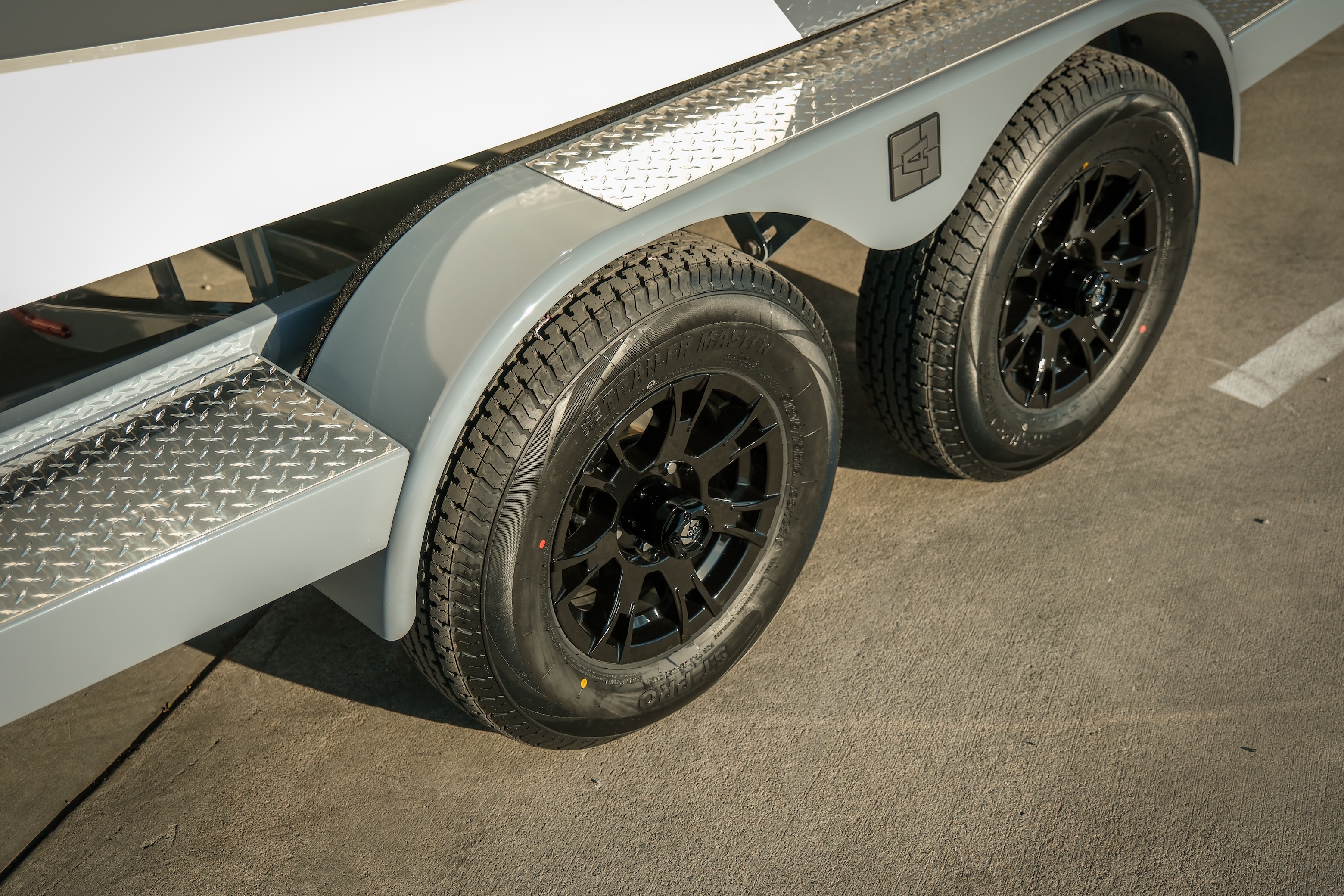 14” Alloy Wheels on Painted Tandem Trailer – easy to tow, looks great doing it