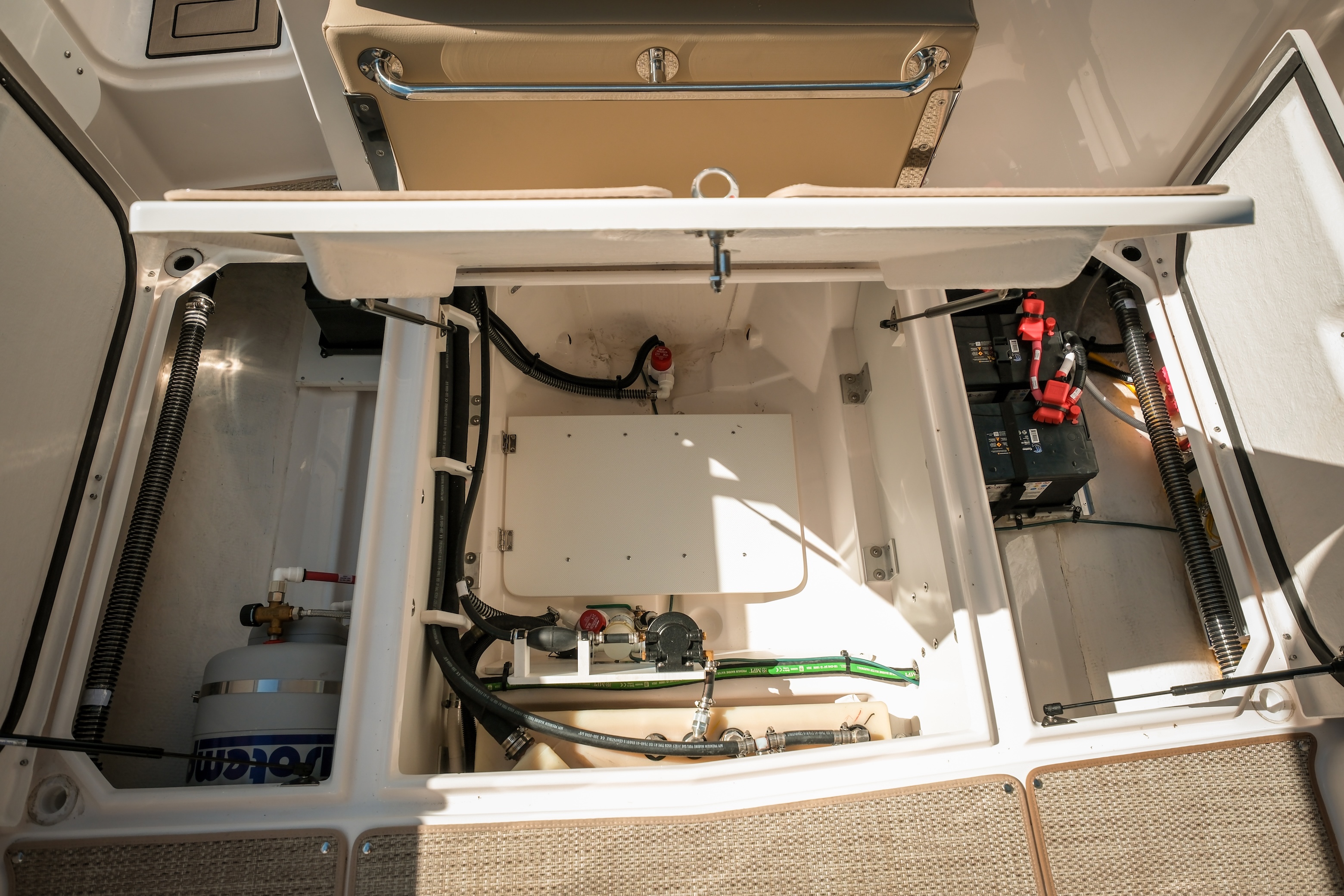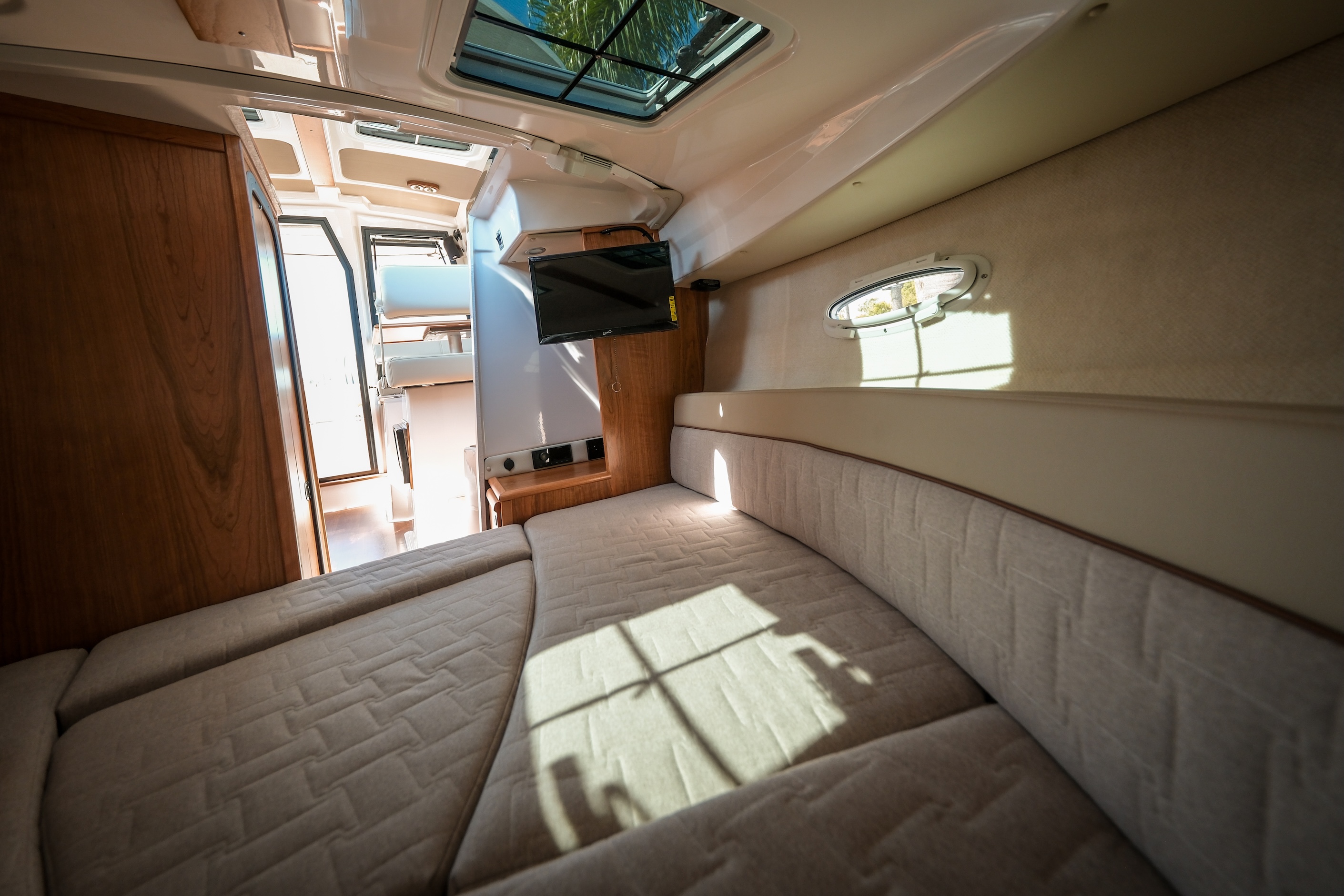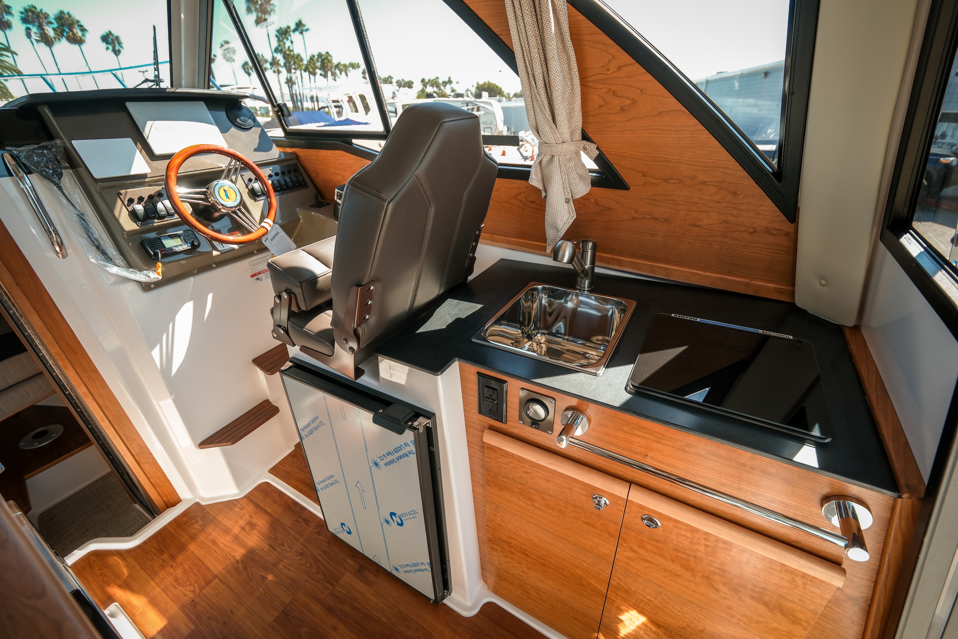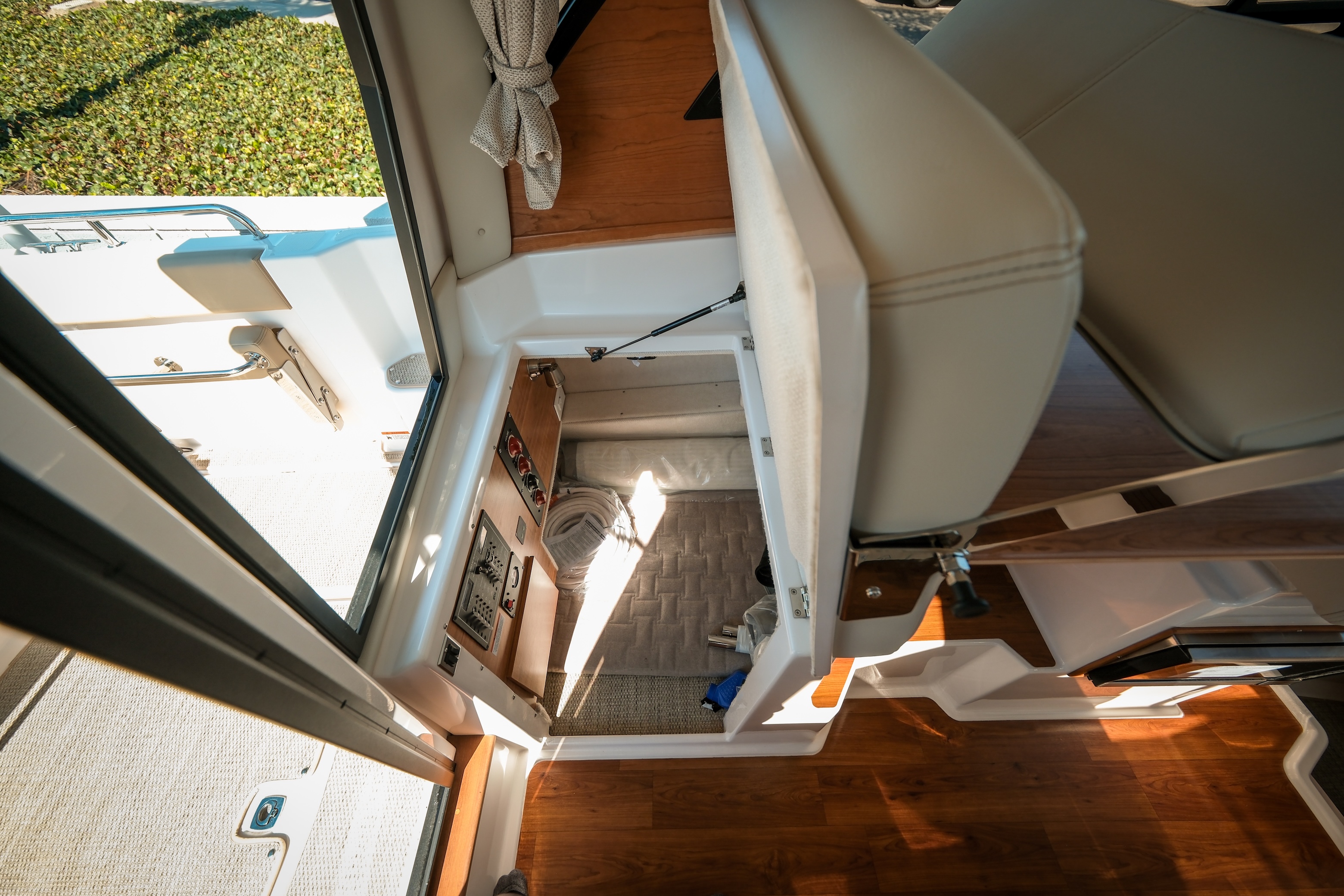 Open-Aft Bulkhead with Flip Seating – Converts dinette to cockpit lounge