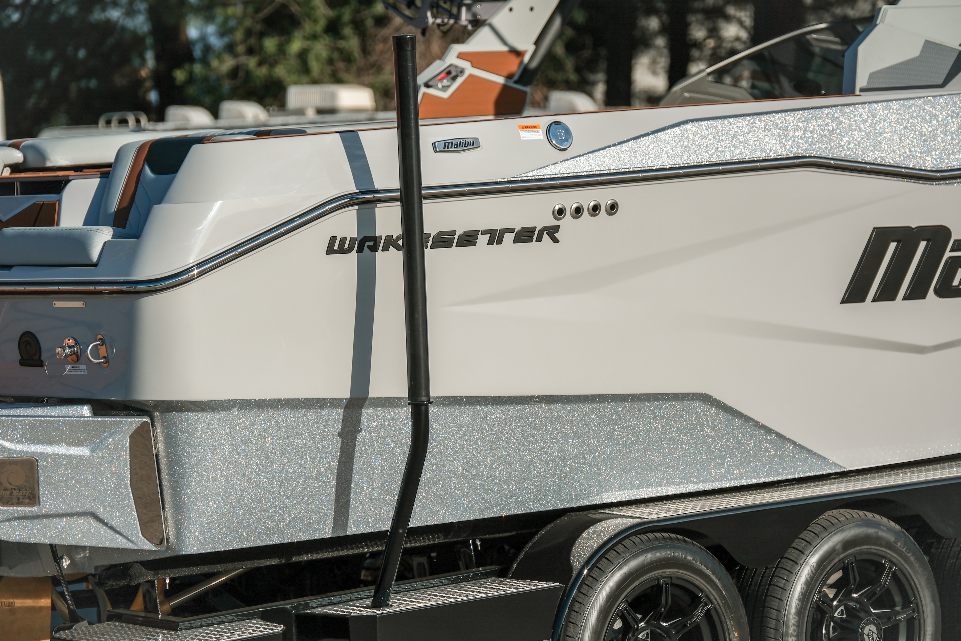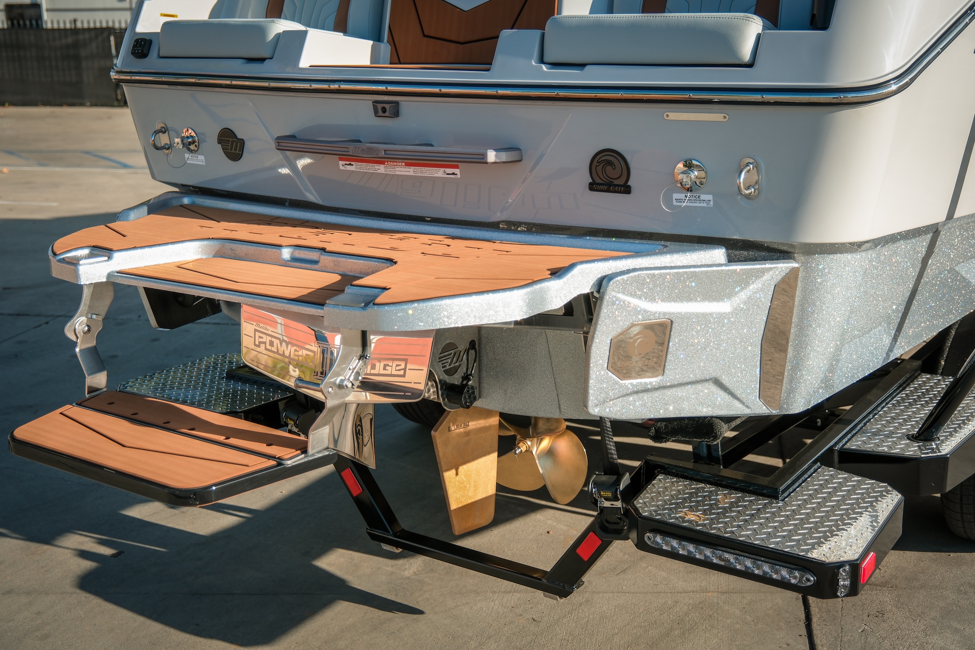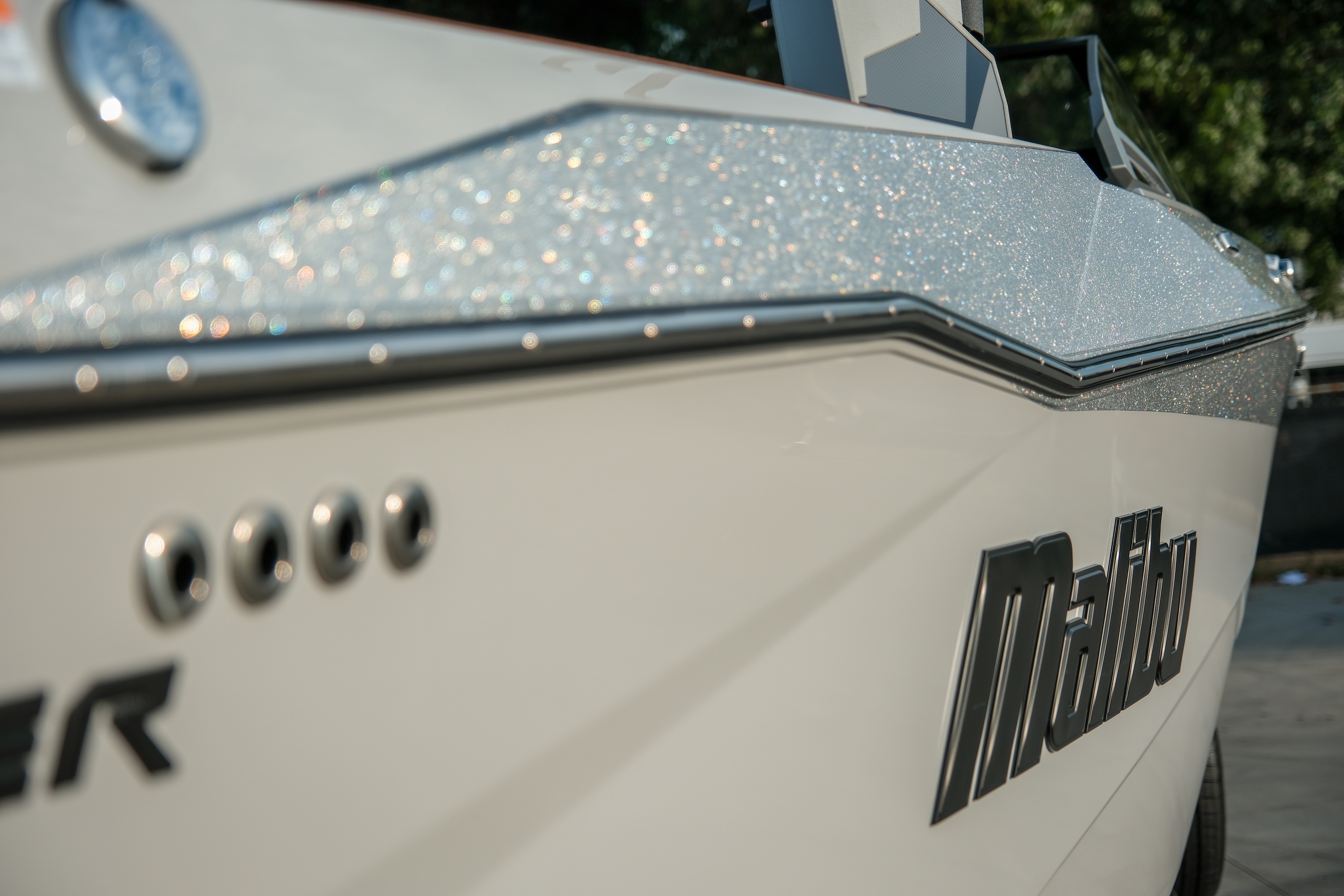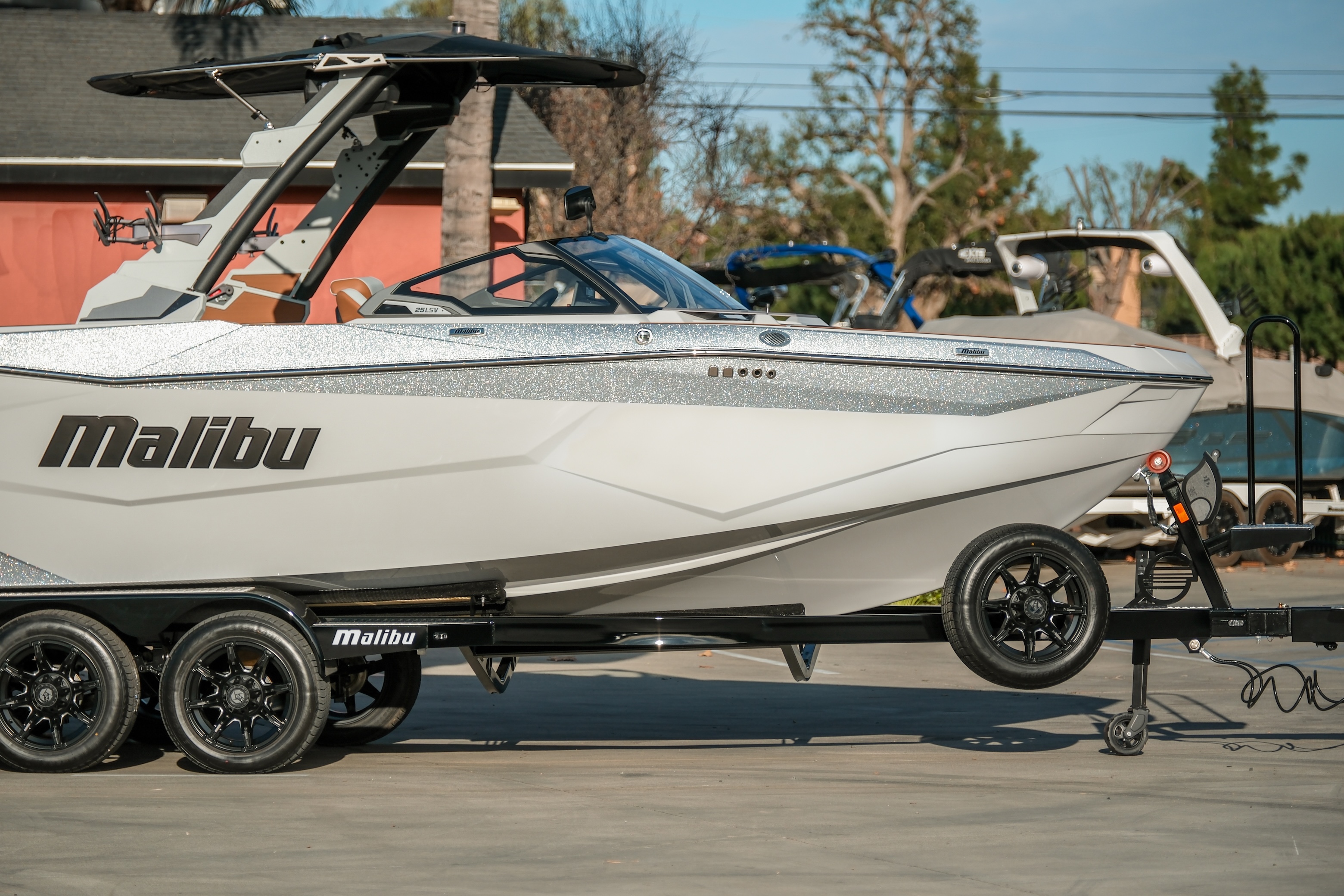 Draped in Light Graphite with Machine Silver Metallic flake accents, this 2026 25 LSV carries a clean, aggressive presence that looks just as premium on the trailer as it does rolling through the cove. The layered flake catches light without being loud — refined, modern, and unmistakably Malibu.