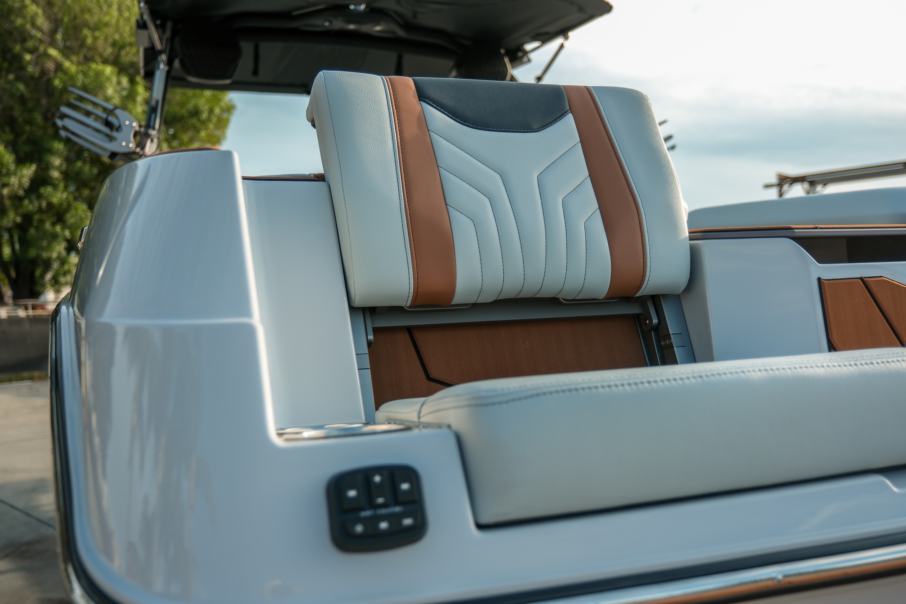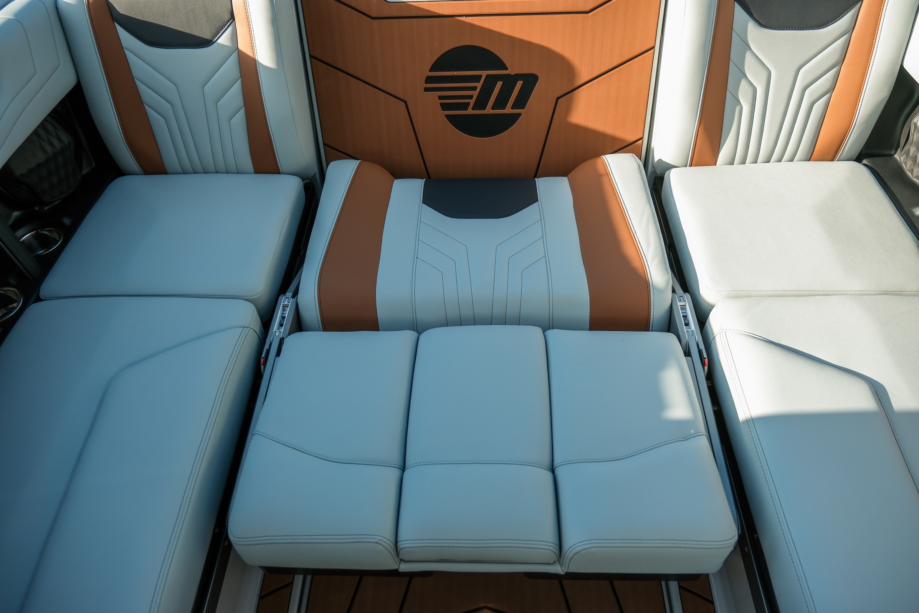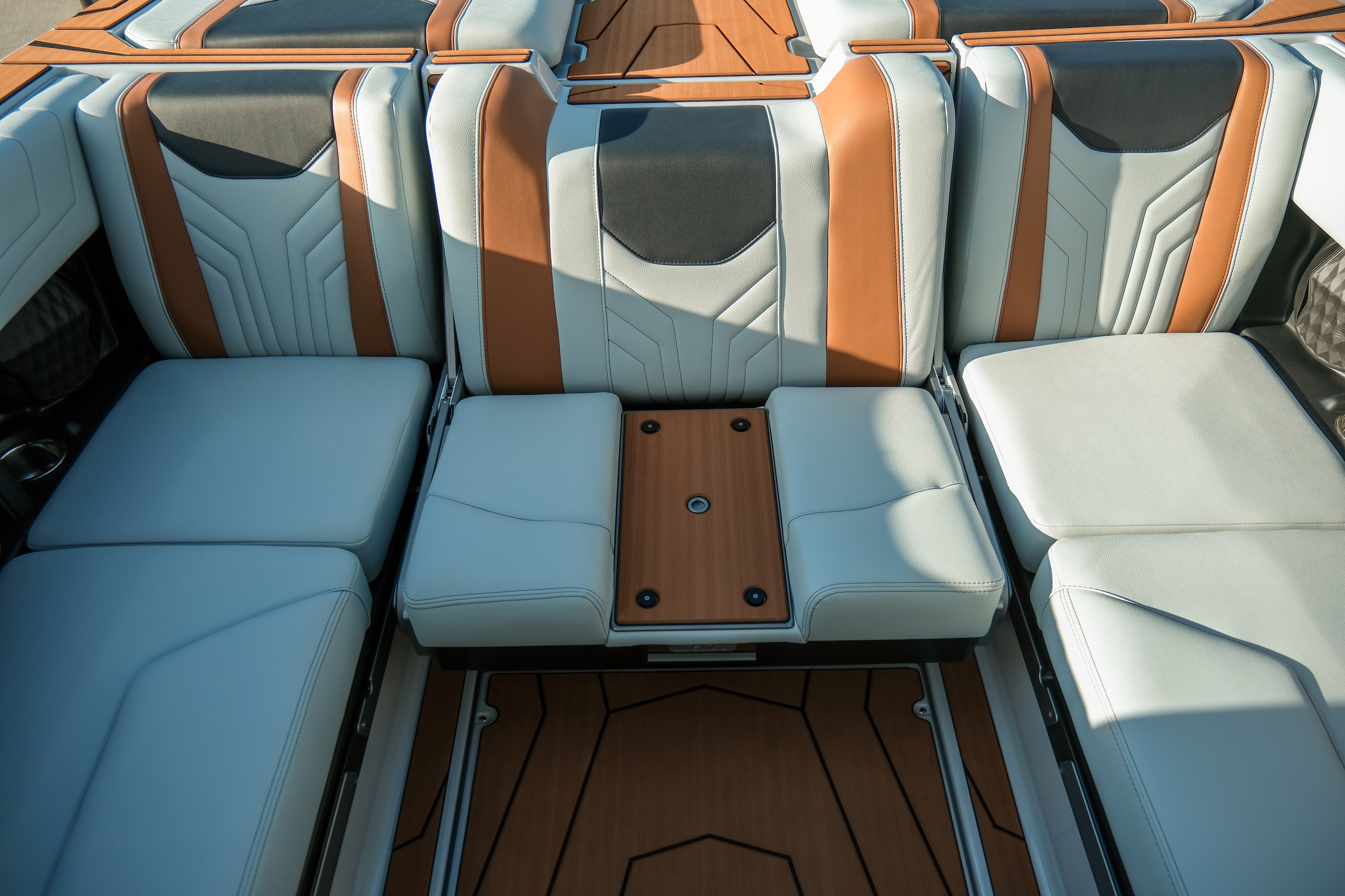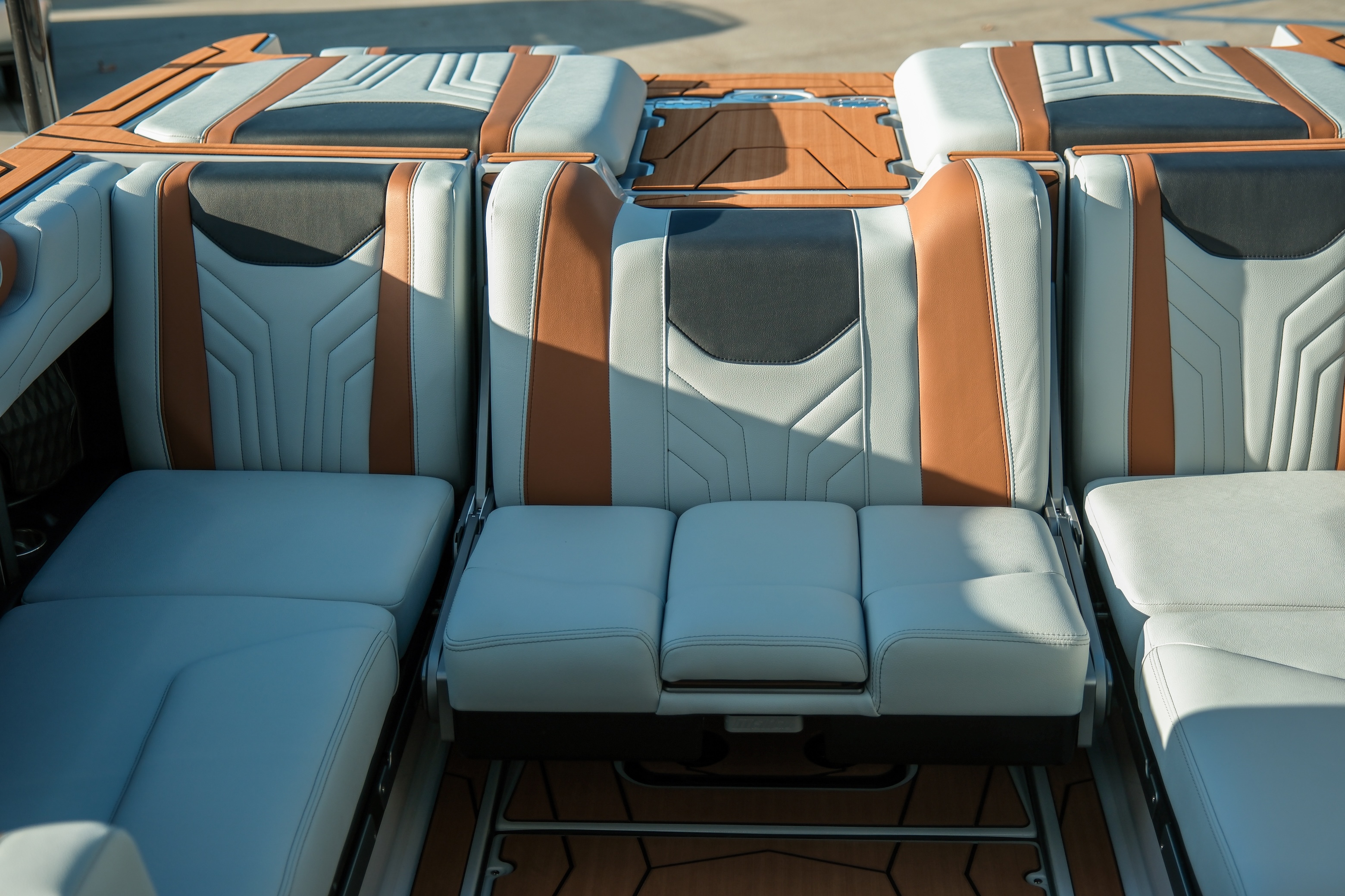 The Max Relax loungers turn the transom into a true social zone, while the Max Pivot seat lets you rotate the cockpit instantly from cruise mode to surf-session viewing.