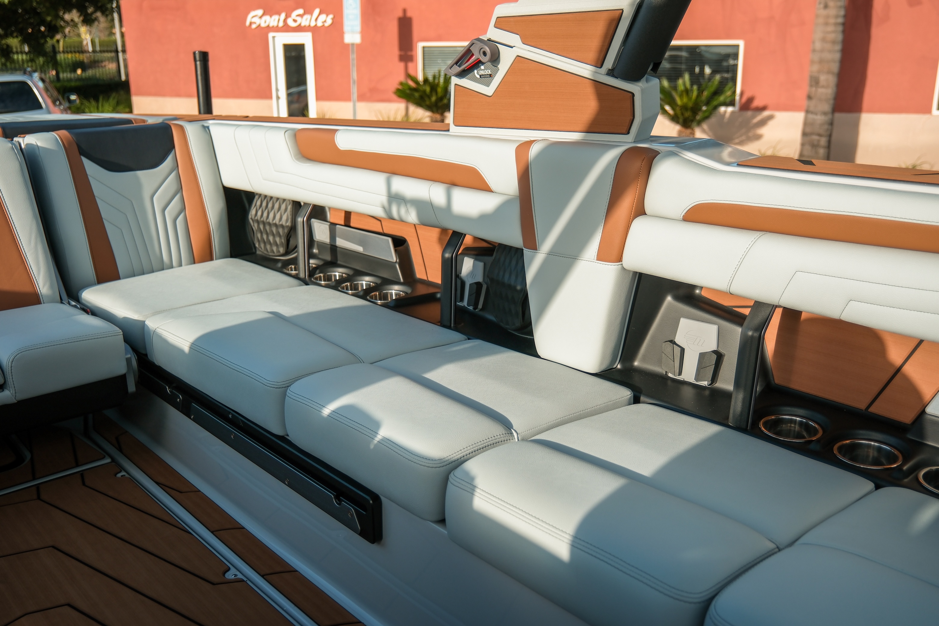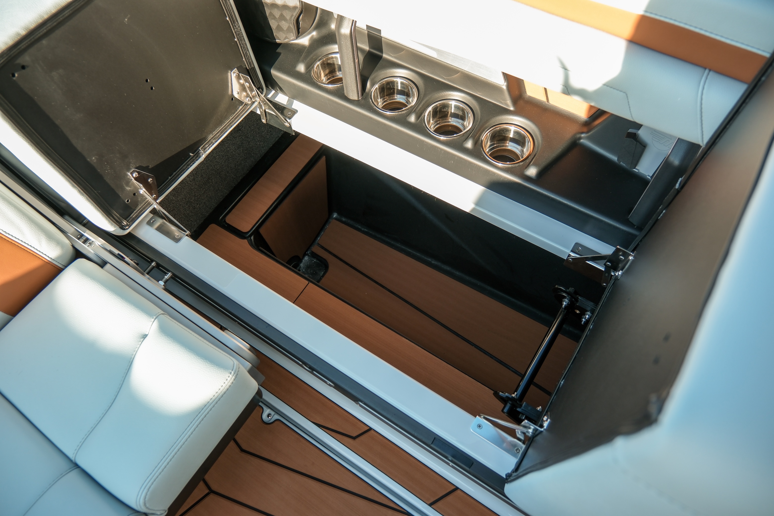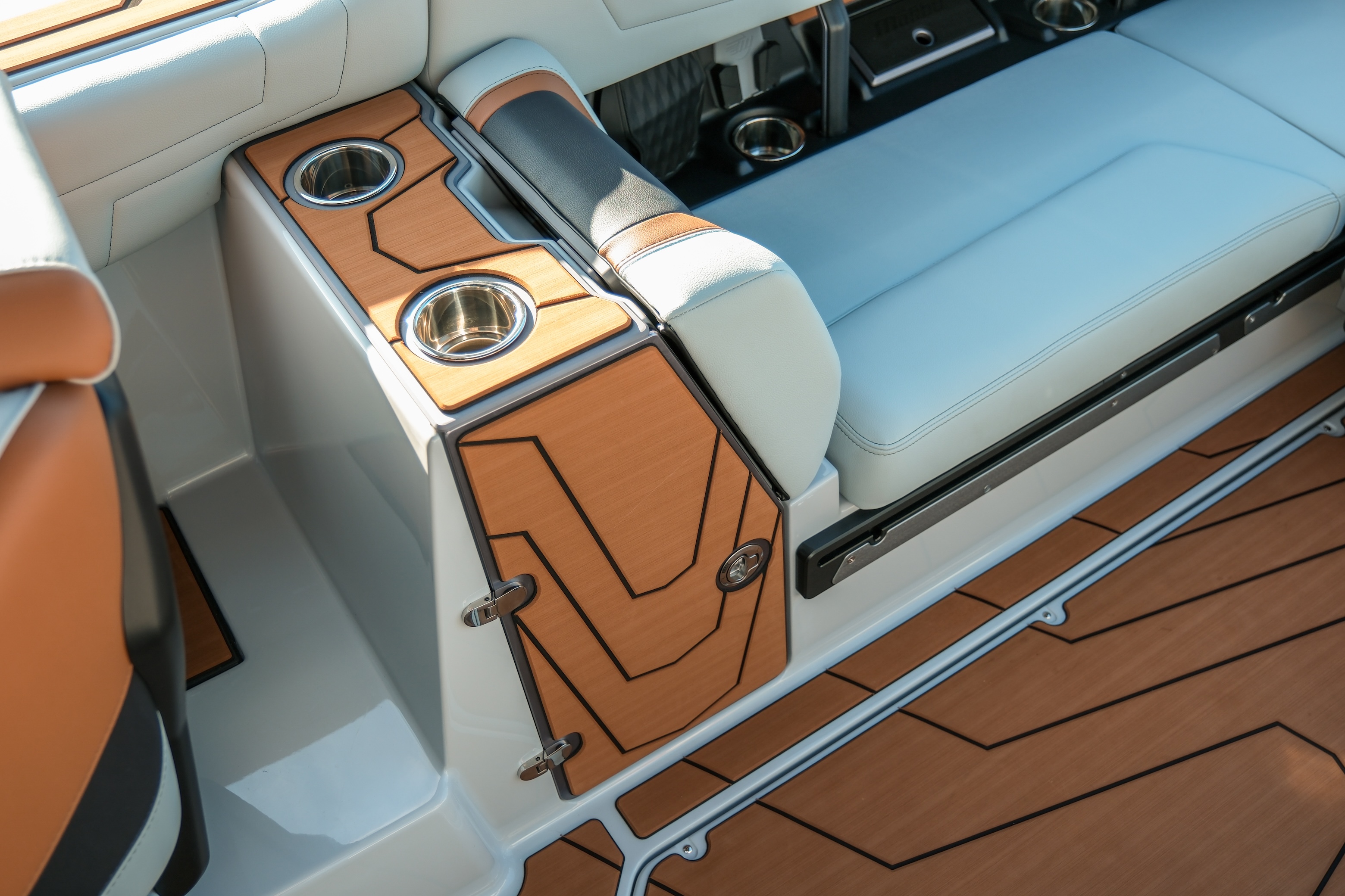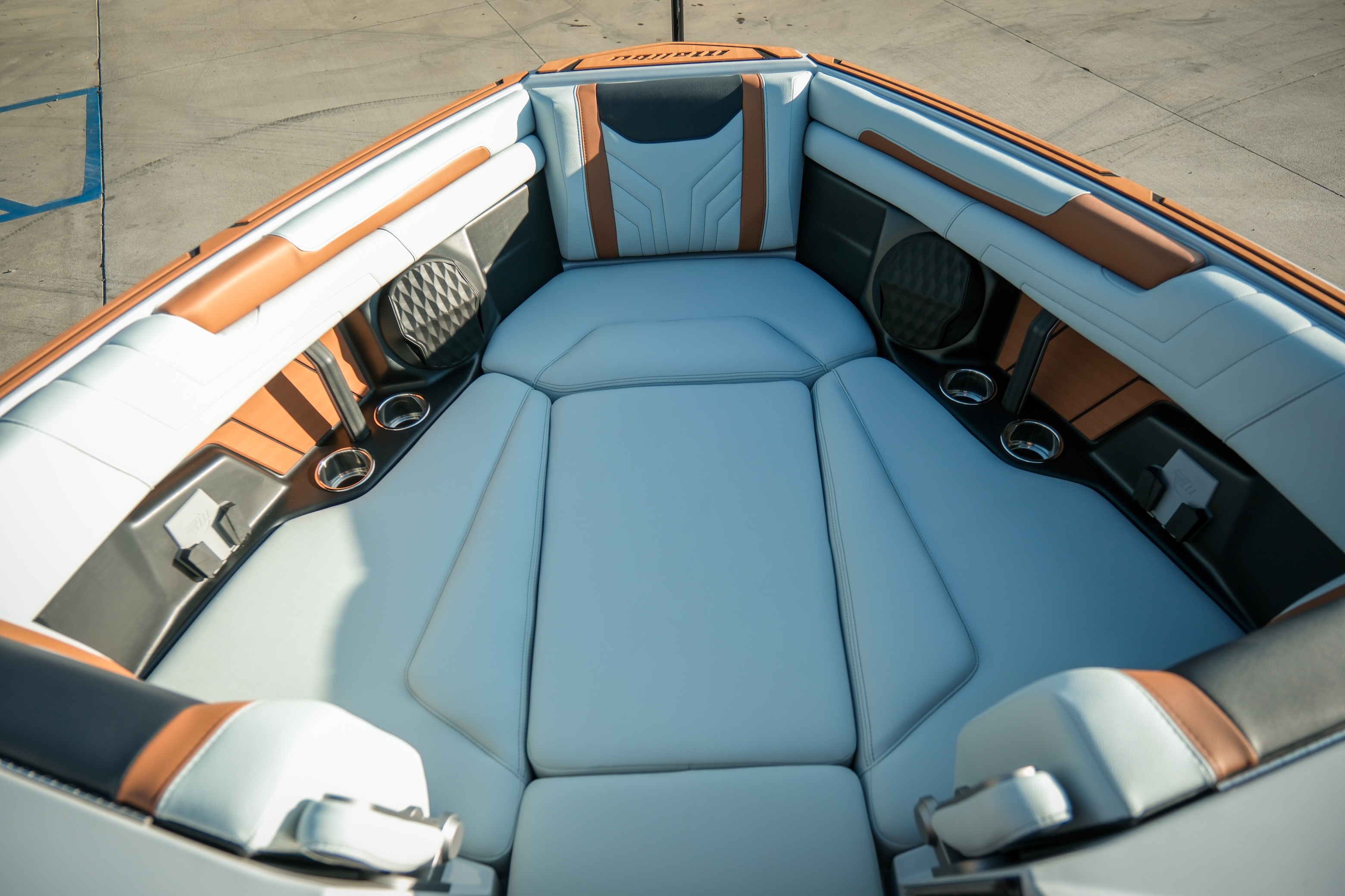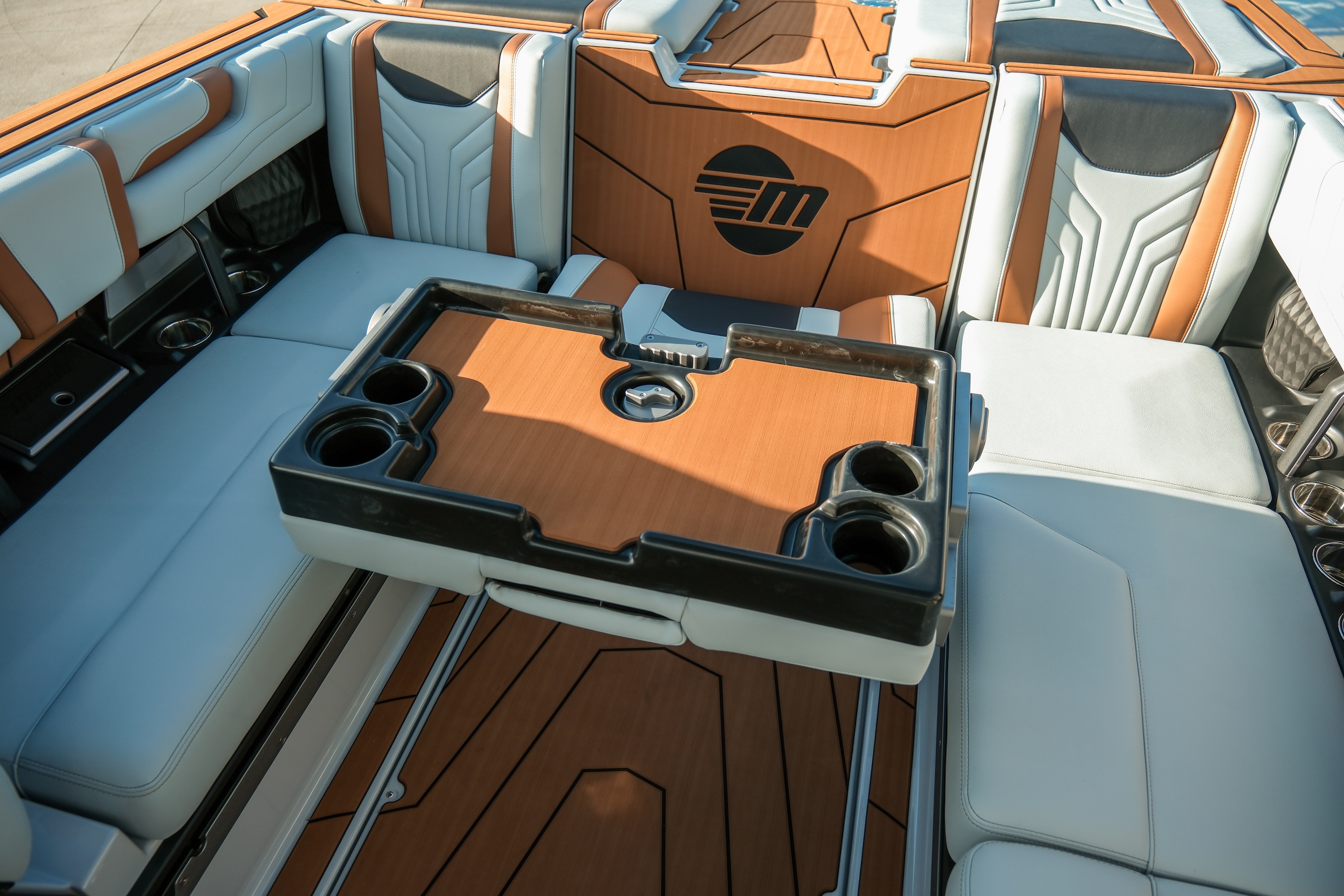 The Max Relax loungers turn the transom into a true social zone, while the Max Pivot seat lets you rotate the cockpit instantly from cruise mode to surf-session viewing.