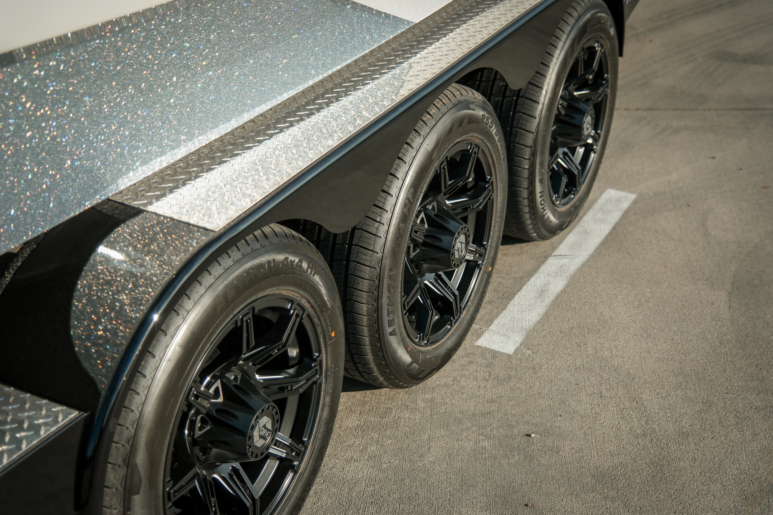 Sitting on a Triple Axle Trailer with 18” Stealth Wheels, matching ebony accents, swing-away tongue, transom step lighting, and retractable straps — this rig looks as serious on the road as it does in the water.